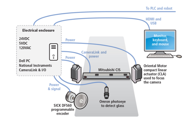 接触式图像传感器(CIS)线扫描相机可提高视觉系统分辨率,以识别汽车玻璃上丝网印刷迹线中的孔、空隙和断裂等缺陷。