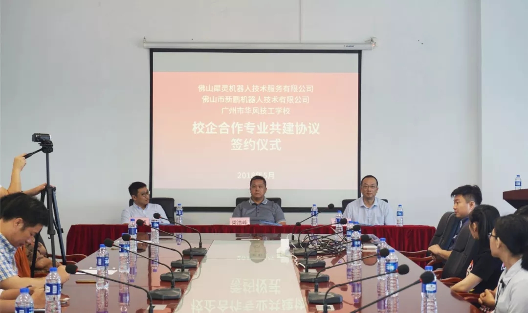 广州市华风技工学校梁浩峰校长一行莅临丝瓜视频污版在线观看丝瓜IOS视频下载实训中心,与丝瓜视频污版在线观看机器人、新鹏机器人共同签订三方校企合作协议,共建丝瓜IOS视频下载专业