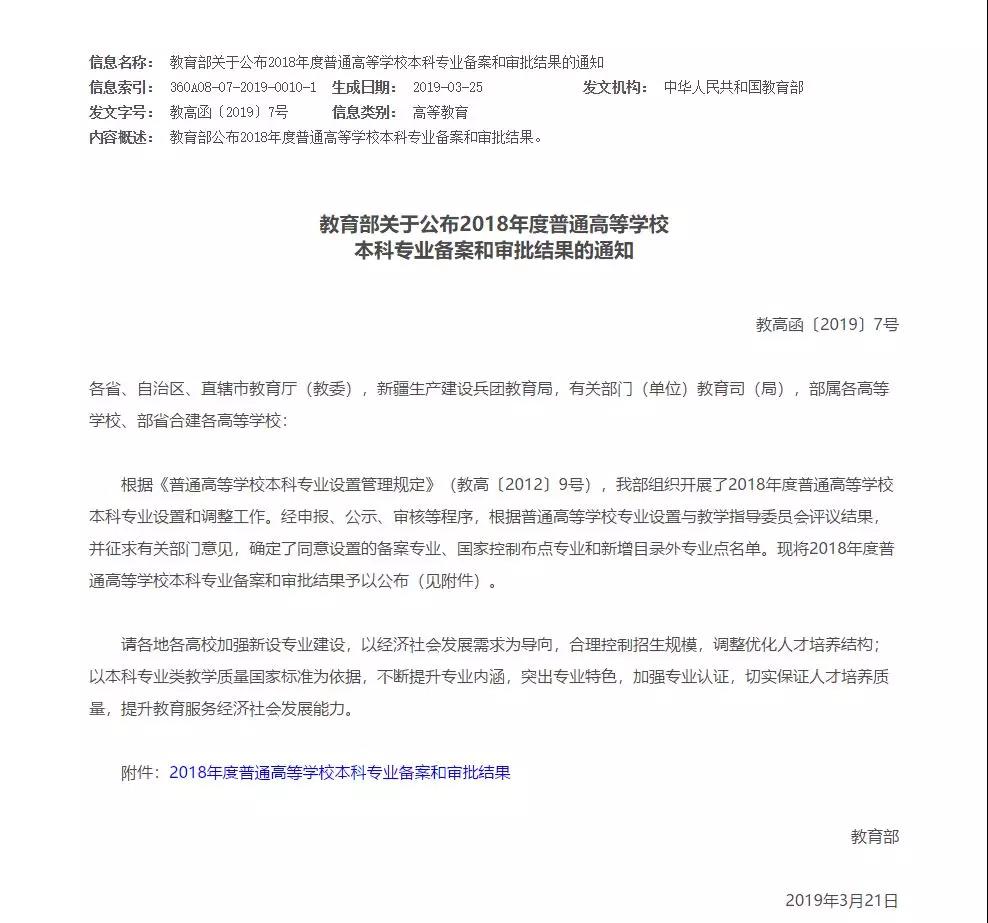 前不久,教育部公布了2018本科专业备案和审批结果。确定了同意设置的备案专业、国家控制布点专业和新增目录外专业点名单。