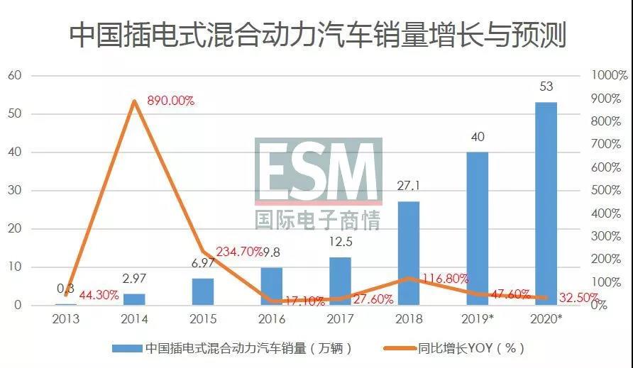 图5 2018年中国插电式混合动力汽车销量增长与预测