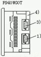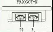 (2)连接个人计算机/PLC端口(RS-232C)9针D-sub阳型。连接个人计算机利用画面设计软件创建画面数据。也可以利用这个端口连接PLC或微机主板(在F920GOT-K型中,只有Q系列PLC能连接) :也可以通过这个端口连接两个或更多个GOT模块(通过RS232C)、条码阅读器或打印机(F920GOT-K除外)。