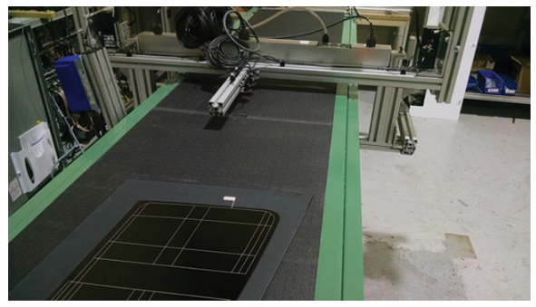 图3.汽车天窗玻璃上的迹线在三菱电机的线扫描摄像机视野下通过时进行检查。
