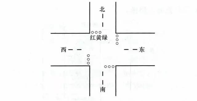 系统要求用两个按钮来控制交通信号灯工作,交通信号灯排列如下图所示。