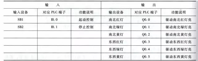 交通信号灯控制需用到的输入/输出设备和对应的PLC端子见下表。