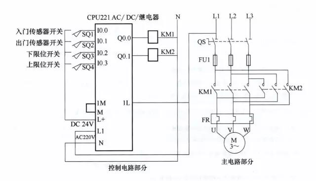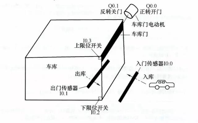 系统要求车库门在车辆进出时能自动打开关闭,车库门控制结构如下图所示。