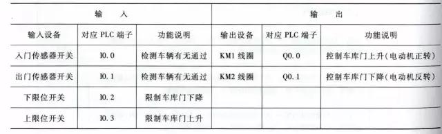 车库自动门控制需用到的输入/输出设备和对应的PLC端子见下表: