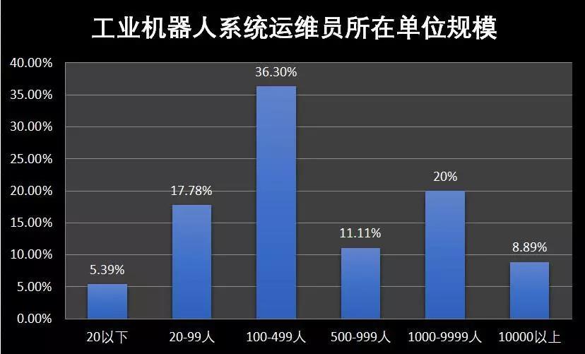 20人及以下占比5.39%,20-99人占比17.78%,100-499人占比36.3%,500-999人占比11.11%,10000-9999人及以上占比20%,10000以上的占比8.89%。