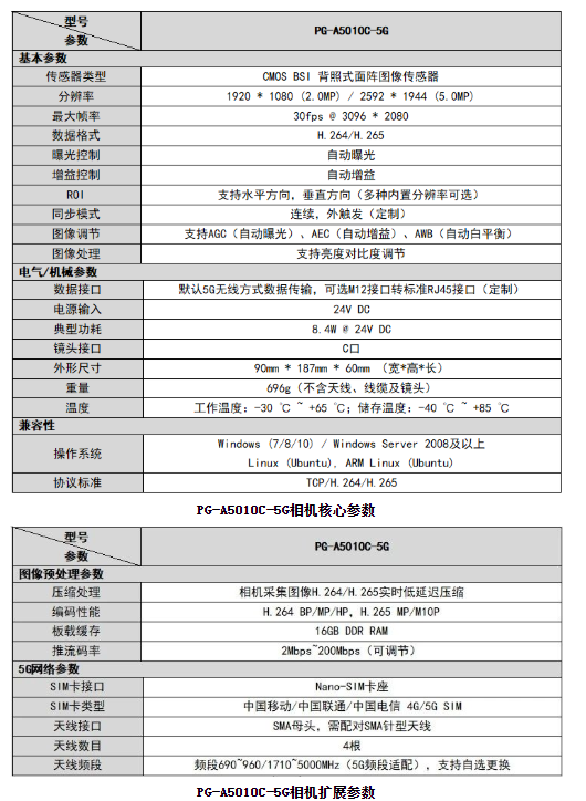 该相机内置华为®最新的5G工业模组(MH5000)和图像处理芯片。具有如下特点: