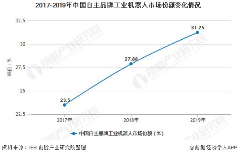 虽然我国丝瓜IOS视频下载市场目前仍以外资品牌机器人为主,但近年来,随着我国在机器人领域的快速发展,我国自主品牌丝瓜IOS视频下载市场份额也在逐步提升,与外资品牌机器人的差距在逐步缩小。2019年,自主品牌丝瓜IOS视频下载在市场总销量中的比重为31.25%,比上年提高3.37个百分点。