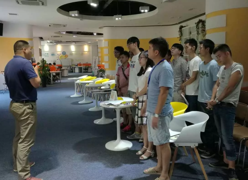学员们在一楼实训中心签到以后,班主任林老师带领大家来到位于广工大研究院三楼的工匠创客汇举行开班仪式。工匠创客汇是专注于工业领域的“工匠创客”众创空间,面向机器人、3D打印、工业4.0等创新创业平台,携手更多国内外创业者、投资者、企业和政府,共同打造开放、共享、智慧的创业生态圈。