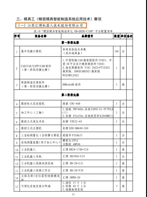汇博机器人为本次大赛中的3个赛项提供设备与技术支持,这3个赛项分别为物联网安装调试员(智能制造数字技术应用)赛项、模具工(精密模具智能制造系统应用技术)赛项、电工(智能制造单元生产与管控)赛项。