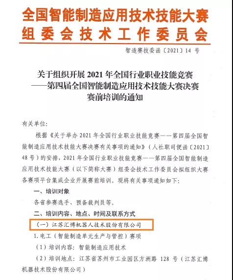 2021年12月15日,由人力资源社会保障部、中华全国总工会、中国机械工业联合会共同主办的2021年全国行业职业技能竞赛——第四届全国智能制造应用技术技能大赛决赛在四川省德阳市拉开帷幕,汇博为大赛指定设备合作商,为3个赛项提供设备支持与技术服务。