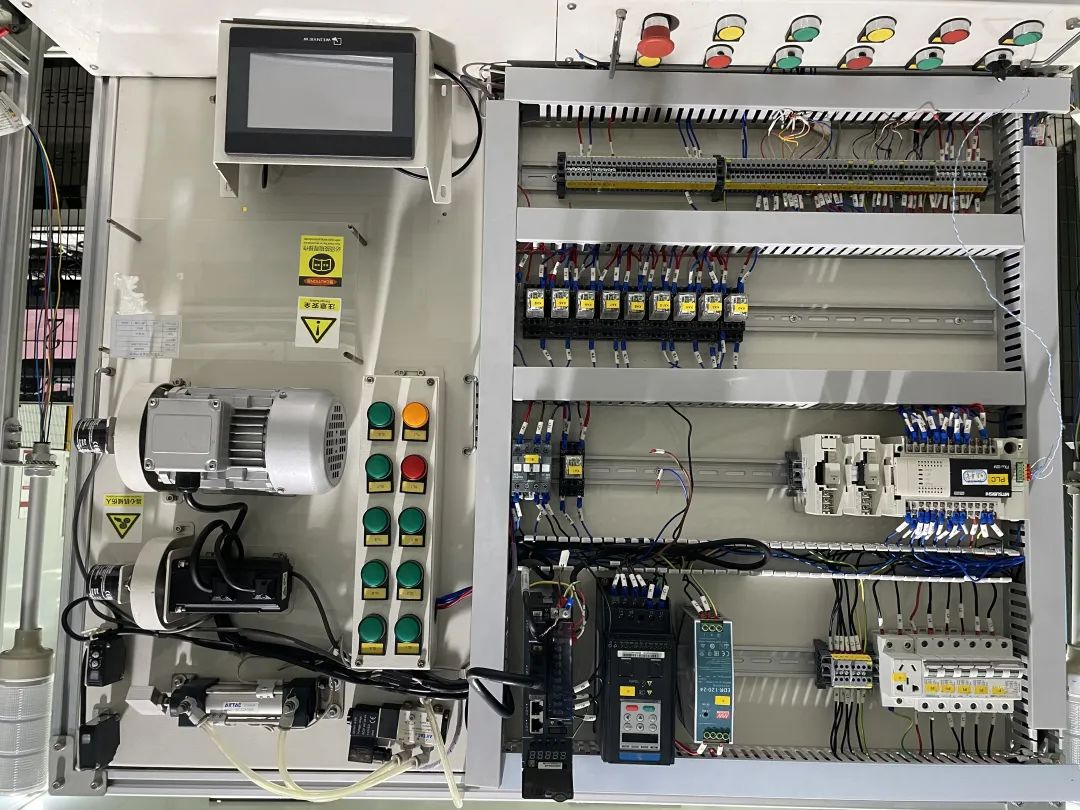 1.自动化倍速链及工艺转台:陈同学主要完成了PLC电柜的接线绘图与实际接线、机器人与PLC的I/O接线、变频模拟量模块与PLC的接线、伺服驱动器与PLC的接线、传感器与PLC的接线、电磁阀与PLC的接线,独立完成了PLC程序的编写、机器人程序的编写、配方程序的编写、触摸屏的编写。