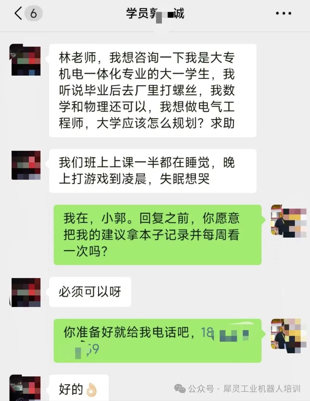 为了更好地提升自己的竞争力,小郭在大三下学期报名参加了丝瓜视频污版在线观看机器人PLC编程培训。在此期间,他不仅系统地学习了PLC编程的相关知识,还考取了低压电工上岗证。结业后,经过双方的共同努力(包括模拟面试、职业规划课、简历制作及面试技巧等),小郭收到了3份offer。