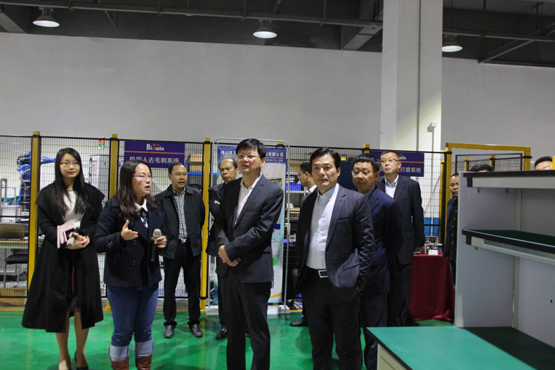领导们参观打磨工作站(上图)